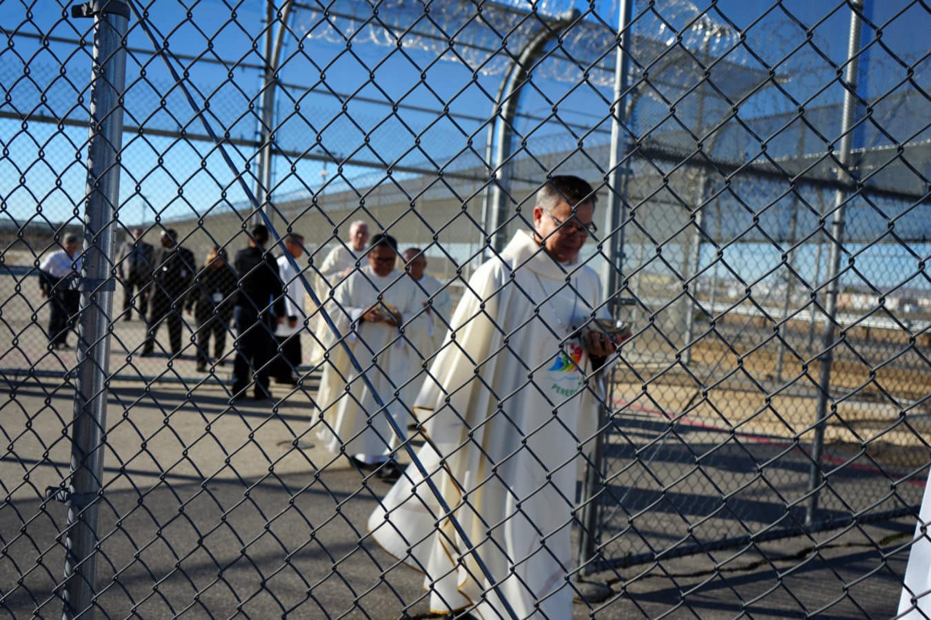 Catholic bishops celebrate mass with more than 300 detainees at ICE detention center in Adelanto
